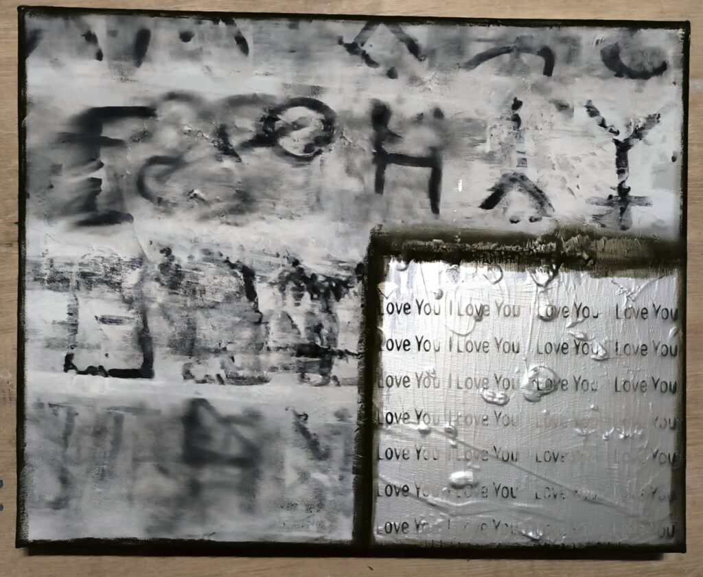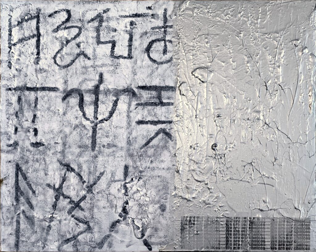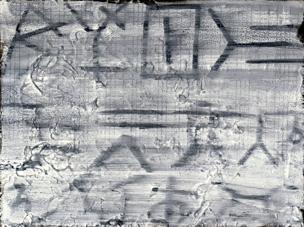 Hand-scratched equations and diagrams are laser-slashed into irregular grids or human words. Raw human mark-making fused with machine precision the ontic moment when being bleeds through. Is this the future of creation? Is it ours or theirs?
