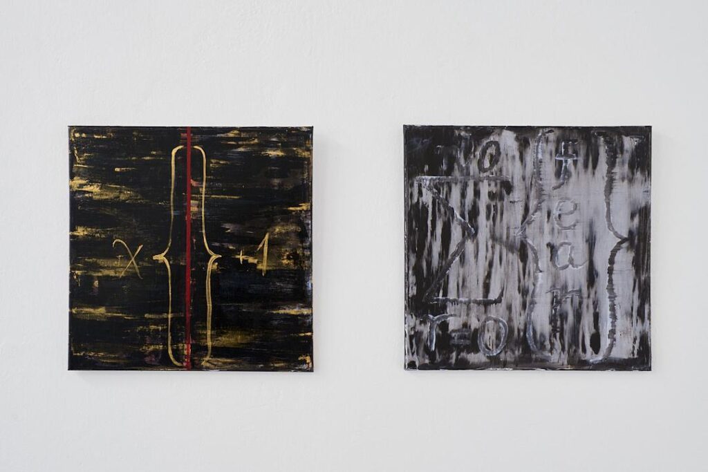 In my paintings, mathematics becomes a visual grammar that is not human-first. A variable does not rule. It depends. A bracket holds, but it also separates. An equation fragment suggests order, but it also admits what is unknown. The symbols work like an ecology of signs. Meaning is shared across relations. No single element sits at the top. The painting becomes a field of coexistence.